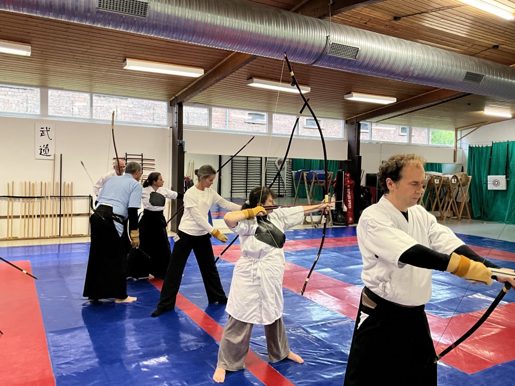 Neben vielen Teilnehmer*innen unserer Gruppe, haben sich an diesem Wochenende Gäste aus Frankfurt, Karlsruhe und Stuttgart eingefunden, die unter Rolands kompetenter und humorvoller Anleitung intensiv die traditionelle Bogentechnik der Heki Ryu Insai Ha geübt haben.
